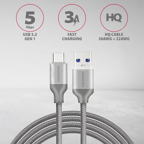 Axagon BUCM3-AM10G USB cable 1 m 3.2 Gen 1 (3.1 Gen 1) USB A USB C Gray
